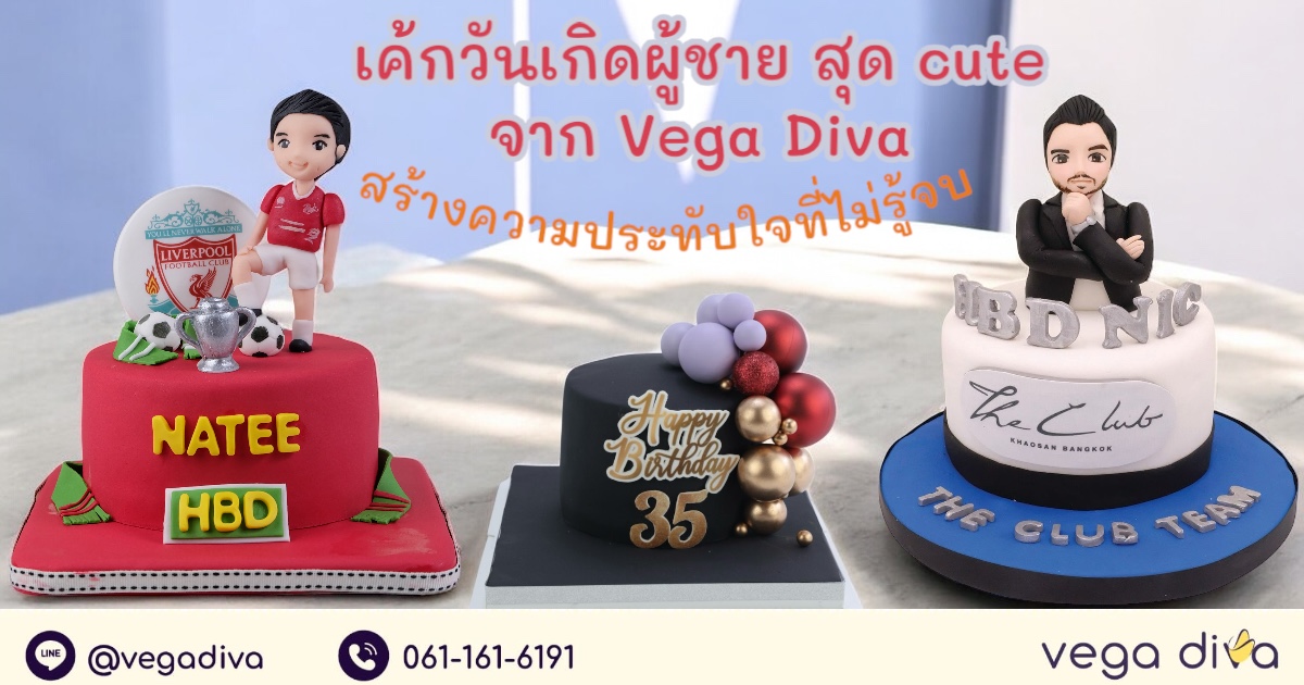 ใครว่าของขวัญสำหรับผู้ชายต้องเรียบ ๆ ที่ Vega Diva เราเข้าใจดีว่าเค้กสำหรับผู้ชายก็สามารถ น่ารัก เท่ และอบอุ่นหัวใจ ได้ไม่แพ้เค้กของสาว ๆ ไม่ว่าจะเป็นวันเกิดคุณพ่อ เพื่อนสนิท แฟนหนุ่ม หรือเจ้านายสุดคูล เราพร้อมออกแบบเค้กให้ตรงใจ ด้วยดีไซน์ที่สื่อถึงความเป็นตัวเขา ทั้งมินิมอลหรู ๆ เค้กปั้น 3 มิติสุดกวน เค้กวันเกิดผู้ชาย หรือเค้กธีมงานอดิเรกสุดเท่