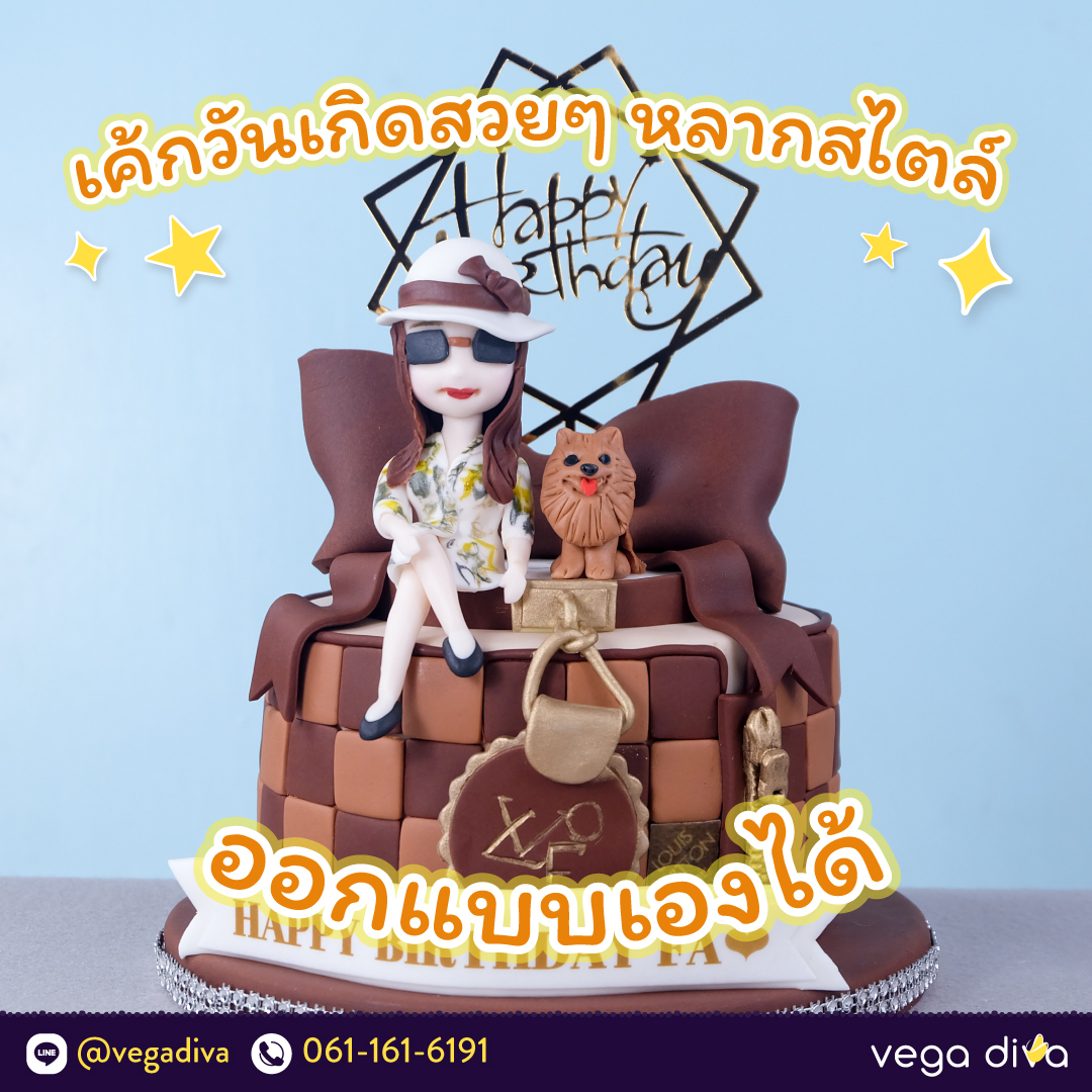 เค้กวันเกิดสำหรับสาว ๆ ที่ Vega Diva มีให้เลือกหลากหลายรูปแบบ แต่ที่เป็นที่นิยมมากที่สุด ก็ต้องเค้กวันเกิดในสไตล์เค้ก 3 มิติ โดยเฉพาะเค้กที่ประดับไปด้วยตุ๊กตาฟองดองของเจ้าของวันเกิดสุดน่ารัก ปักอยู่บนยอด ตกแต่งสวยงาม พร้อมรสชาติเค้กแสนอร่อย และยังสามารถเลือกพร็อพตกแต่งได้ตามสบาย ไม่ว่าจะเป็นกระเป๋าแบรนด์เนม สัตว์เลี้ยงคู่ใจ หรืออะไรก็ได้ทั้งนั้น Vega Diva จัดให้ตามสั่ง