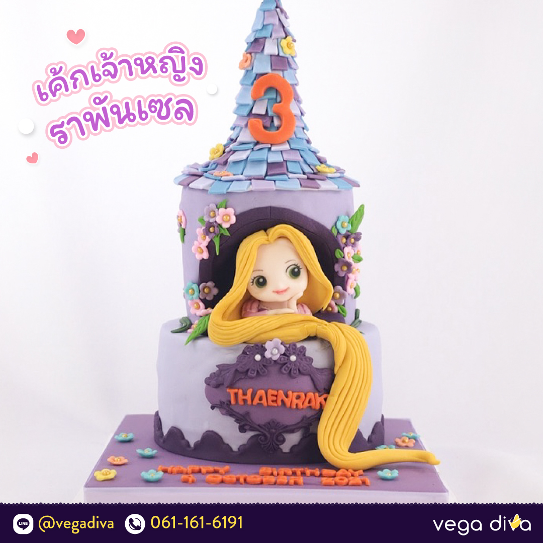 อีกหนึ่งเค้กเจ้าหญิงที่พลาดไม่ได้ เพราะถ้านึกถึงเจ้าหญิงดิสนีย์แล้ว ย่อมต้องคิดถึงเจ้าหญิงผมยาวแสนสวย ที่อาศัยอยู่บนปราสาท รอเจ้าชายรูปงามมาปลดเธอออกจากพันธนาการ ด้วยความสวยงามและเรือนผมที่ยาวสลวย จึงไม่น่าแปลกใจเลยว่าทำไมถึงได้กลายเป็นเค้กเจ้าหญิงยอดนิยมสำหรับงานวันเกิดของเจ้าตัวเล็ก